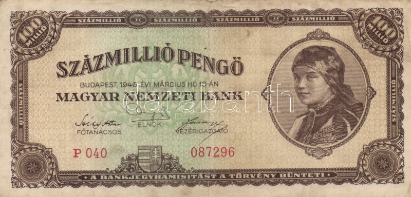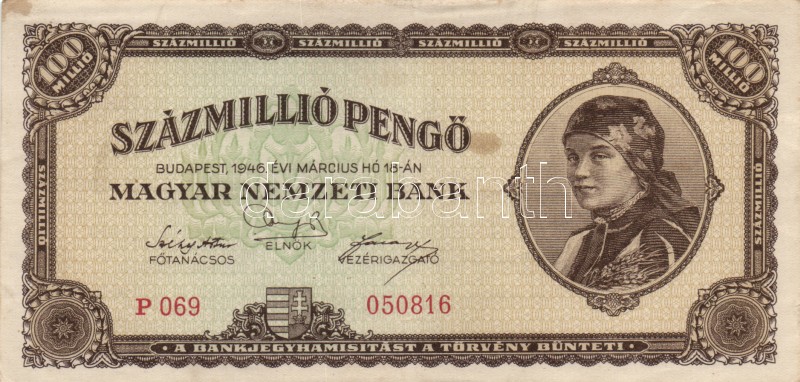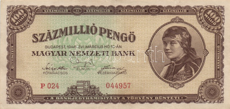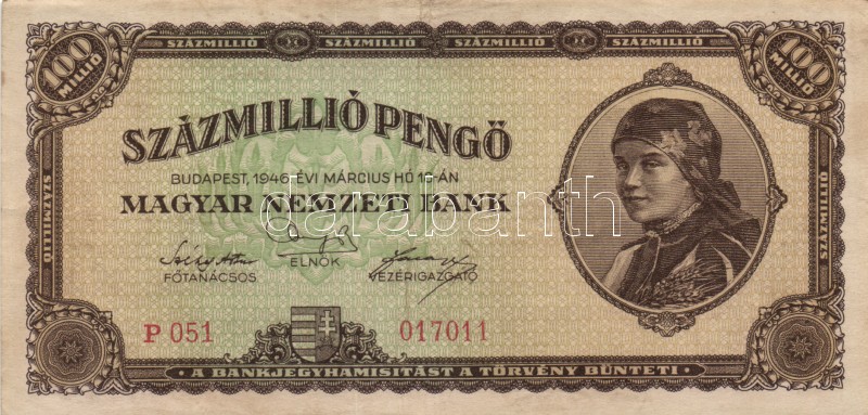 1946. 100.000.000P (12x) alacsony sorozatszámúak T:II,II-,III https://www.darabanth.com/hu/167-Gyorsarveres/167.0/Numizmatika/Magyar-es-magyar-vonatkozasu-bankjegyek~100008/1946-100000000P-12x-alacsony-sorozatszamuak-TII-II-III~II560539