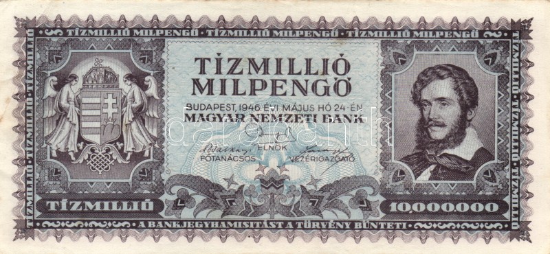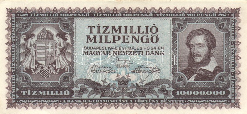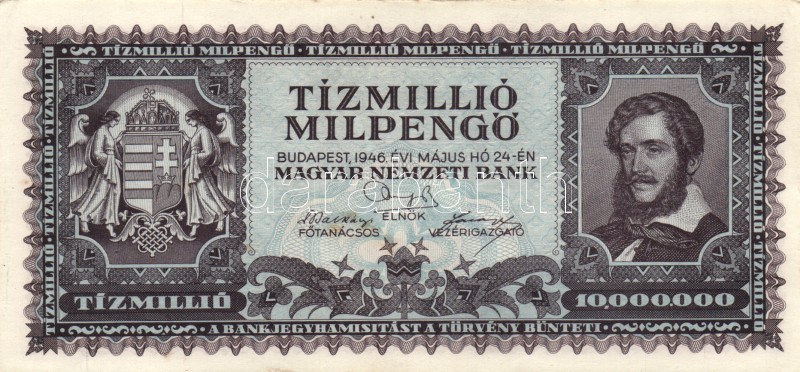 Leírás: 1946. 10.000.000MP (4x) különböző színváltozatok T:I-,II