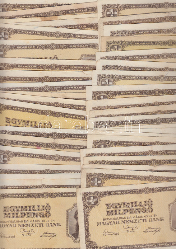 1946. 1.000.000MP (40x) T:II,II-,III https://www.darabanth.com/hu/167-Gyorsarveres/167.0/Numizmatika/Magyar-es-magyar-vonatkozasu-bankjegyek~100008/1946-1000000MP-40x-TII-II-III~II560622
