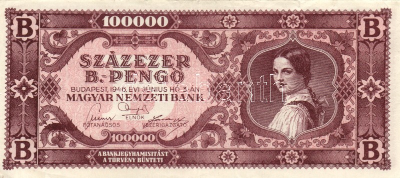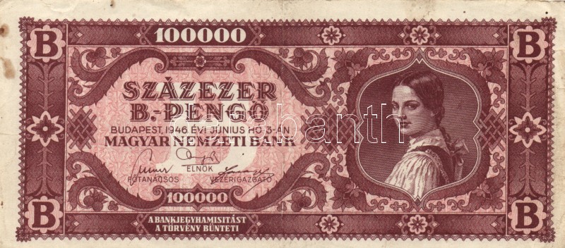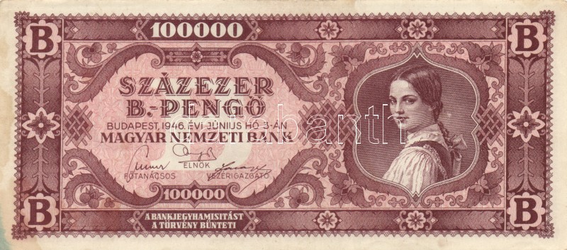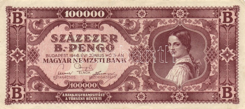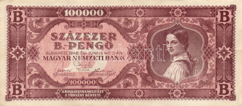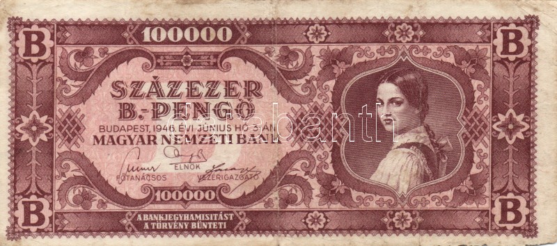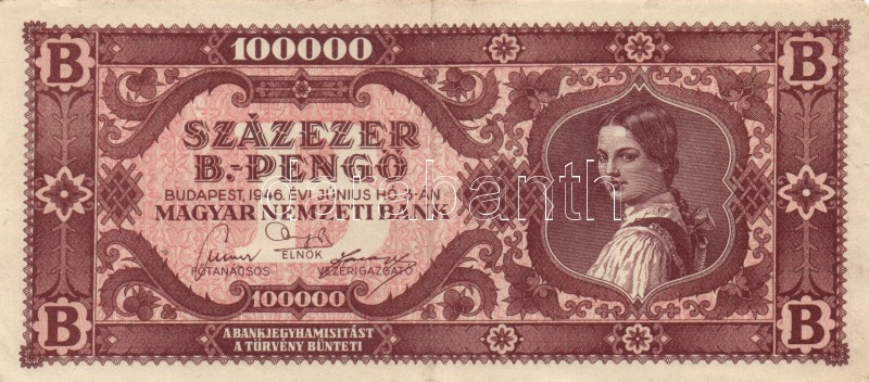 1946. 100.000BP (10x) T:II,III https://www.darabanth.com/hu/167-Gyorsarveres/167.0/Numizmatika/Magyar-es-magyar-vonatkozasu-bankjegyek~100008/1946-100000BP-10x-TII-III~II560618