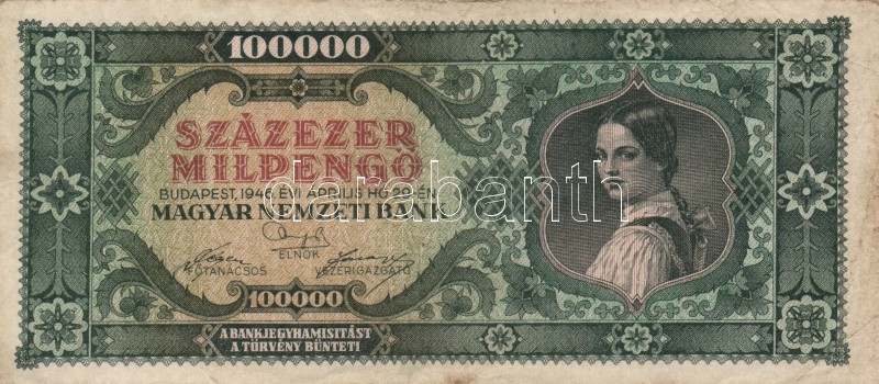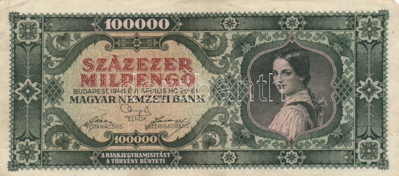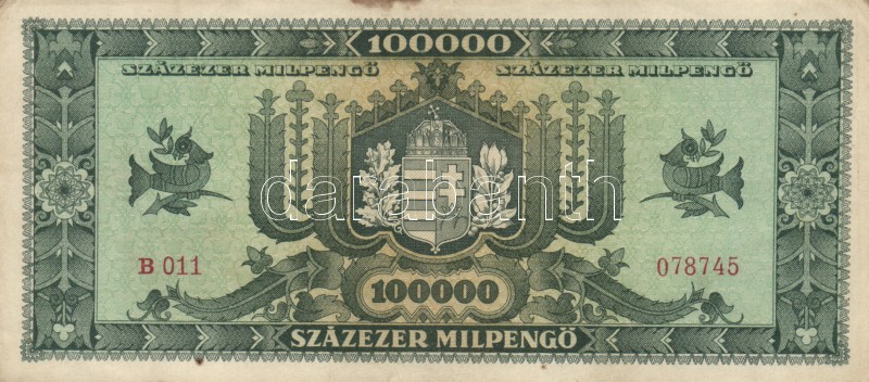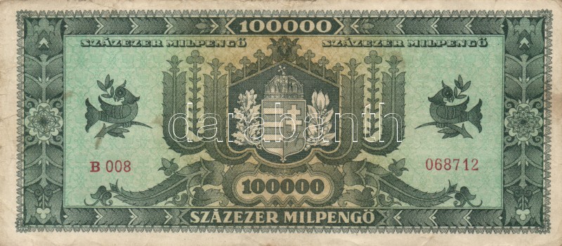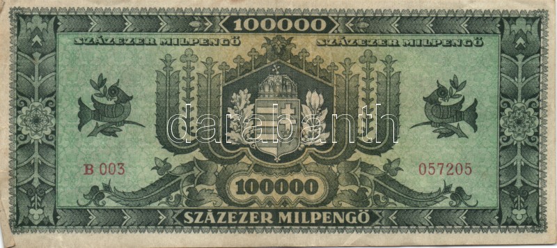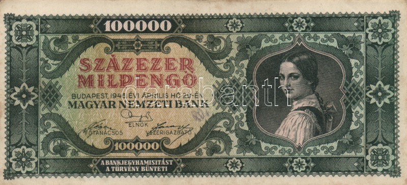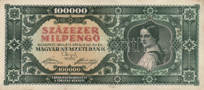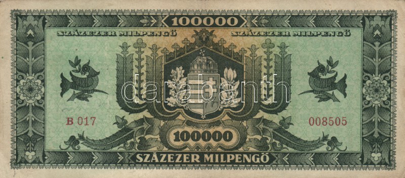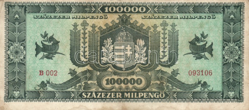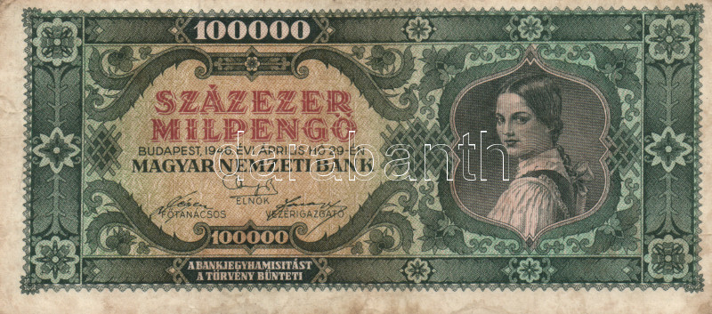 1946. 100.000MP (8x) nagyon alacsony sorozatszámúak! T:I-,II,III https://www.darabanth.com/hu/167-Gyorsarveres/167.0/Numizmatika/Magyar-es-magyar-vonatkozasu-bankjegyek~100008/1946-100000MP-8x-nagyon-alacsony-sorozatszamuak-TI-II-III~II560617
