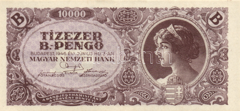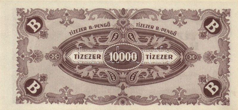 Leírás: 1946. 10.000BP (10x) mindnél lemezhiba hátoldali "E" betűnél, eltolódott nyomattal T:I