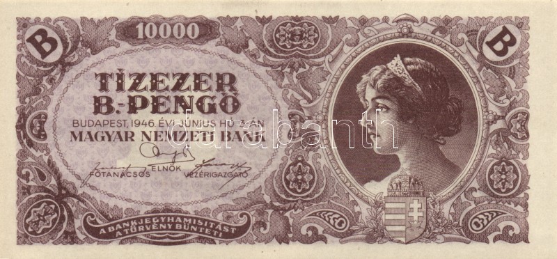 1946. 10.000BP (10x) mindnél lemezhiba hátoldali "E" betűnél, eltolódo... https://www.darabanth.com/hu/167-Gyorsarveres/167.0/Numizmatika/Magyar-es-magyar-vonatkozasu-bankjegyek~100008/1946-10000BP-10x-mindnel-lemezhiba-hatoldali-E-betunel-eltolodott-nyomattal-TI~II560544