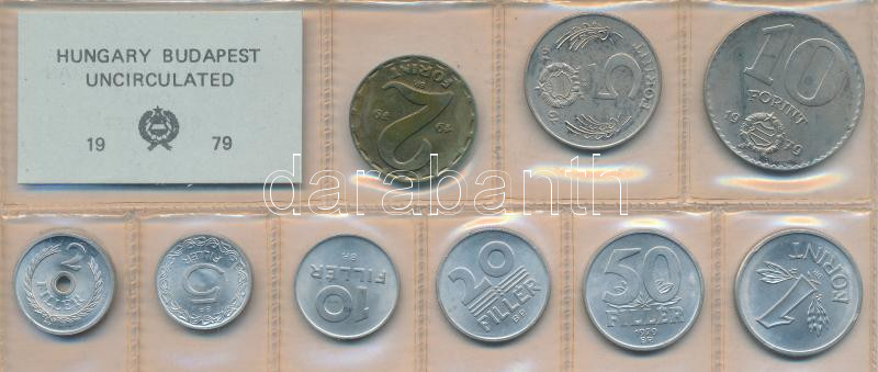 Leírás: 1979. 2f-10Ft 9db klf érmés forgalmi sor fóliatokban T:1