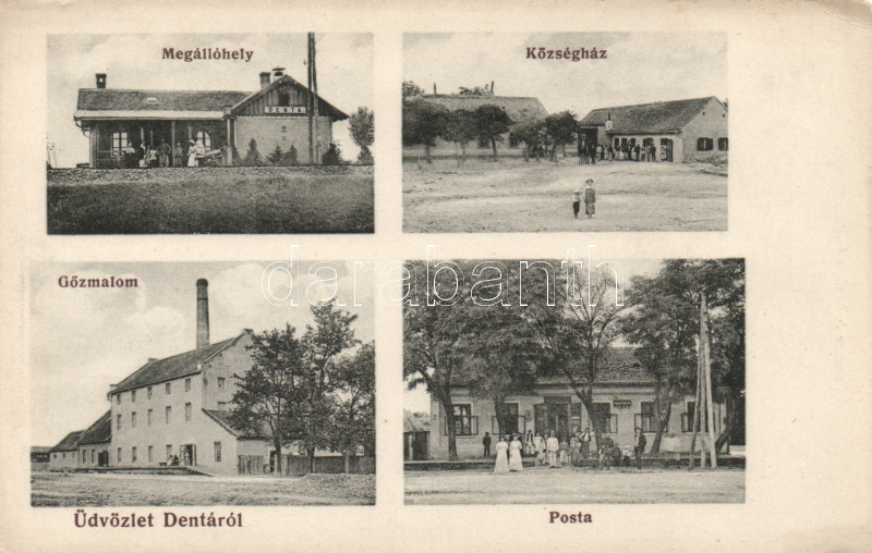 Denta railway station, County Hall, mill, post (EK) https://www.darabanth.com/hu/168-Gyorsarveres/168.0/Kepeslapok/Erdely~2000257/Denta-railway-station-County-Hall-mill-post-EK~II564182