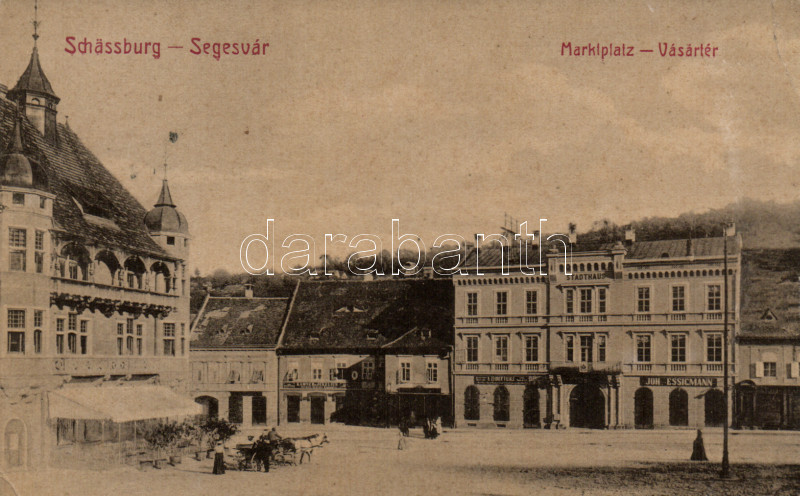 Segesvár Market square, Shops (Essicmann, Zeidner Filiale, Kamner Jeke... https://www.darabanth.com/hu/168-Gyorsarveres/168.0/Kepeslapok/Erdely~2000257/Segesvar-Market-square-Shops-Essicmann-Zeidner-Filiale-Kamner-Jekelius-EK~II563797