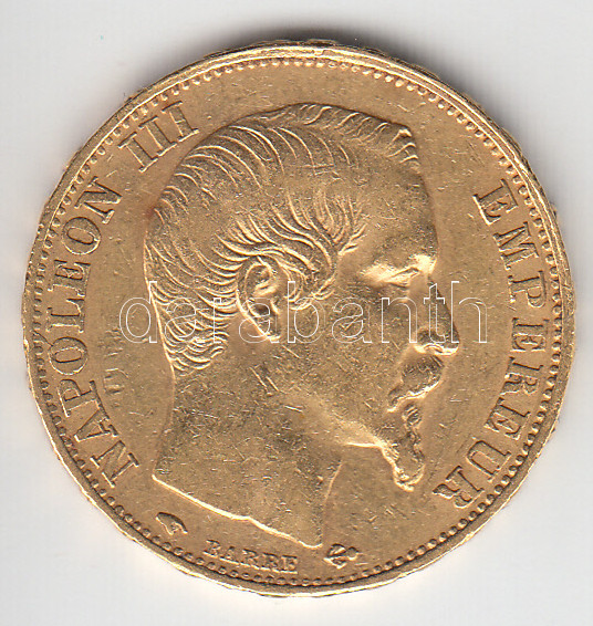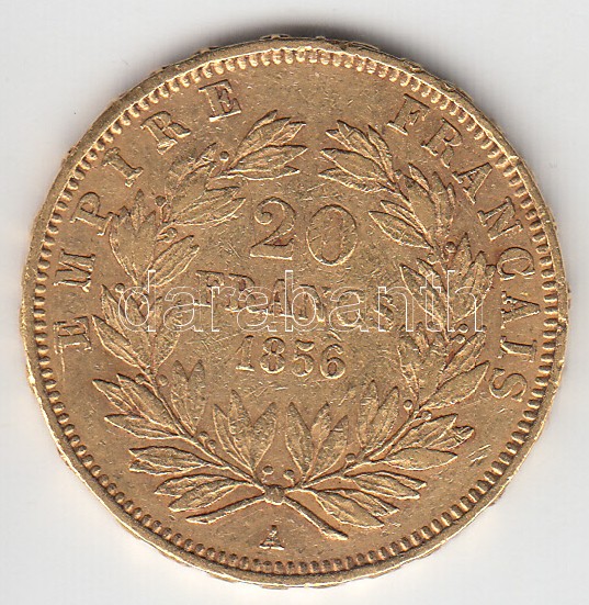 Franciaország/Második Császárság 1856A 20Fr Au "III. Napóleon" Párizs ... https://www.darabanth.com/hu/168-Gyorsarveres/168.0/Numizmatika/Magyar-es-kulfoldi-arany-penzek~2000356/FranciaorszagMasodik-Csaszarsag-1856A-20Fr-Au-III-Napoleon-Parizs-64g0900-T2--3Cbr3E~II565878
