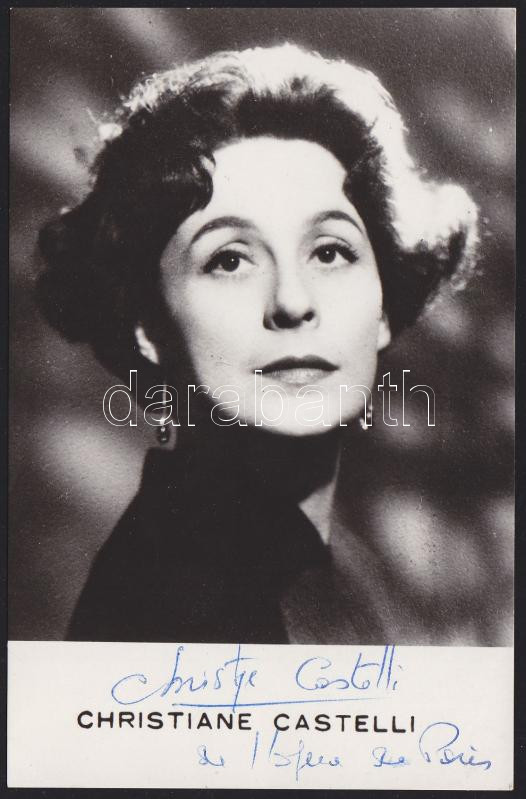 Christiane Castelli fotó, az operaénekesnő saját kezű aláírásával / ph... https://www.darabanth.com/hu/169-Gyorsarveres/169.0/Festmeny-mutargy-papirregiseg-egyeb/Alairas~4000016/Christiane-Castelli-foto-az-operaenekesno-sajat-kezu-alairasaval-photo-with-autograph-si~II437725