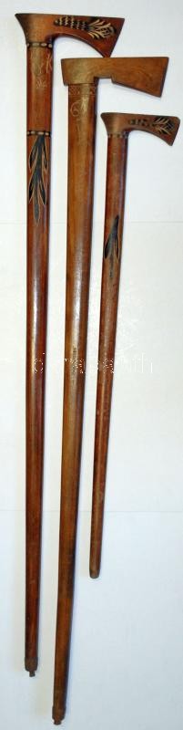 Leírás: 3 db díszített fa fokos bot, Zakopane felirattal, jó állapotban