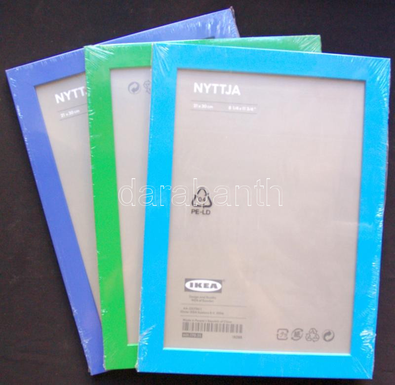Leírás: 3db klf színű IKEA képkeret 21x30-as képekhez