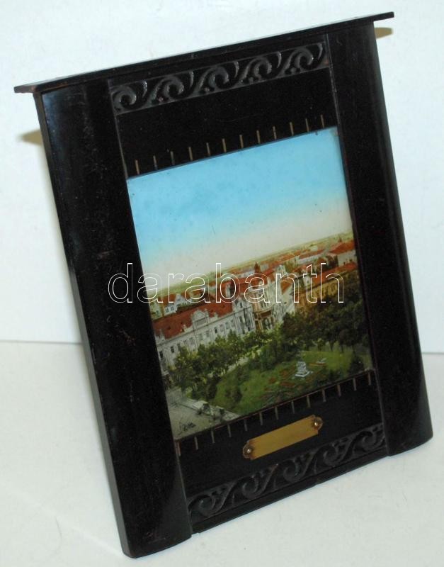 Leírás: Antik asztali fa díszkeret, város fotóval, jó állapotban 18×20 cm
