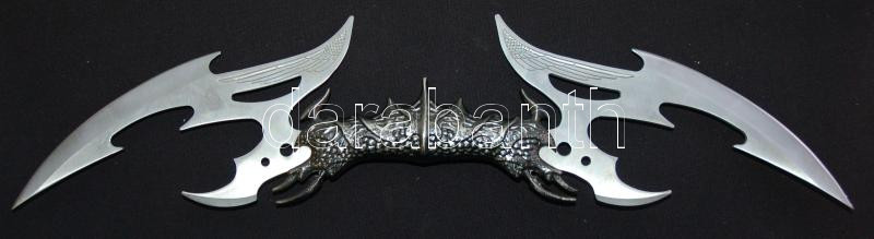 Leírás: Igényes fantasy fegyver - batlet acél pengékkel díszes fém markolattal, kiélezve /