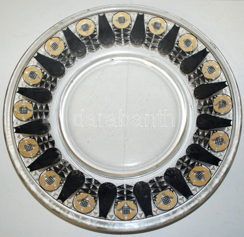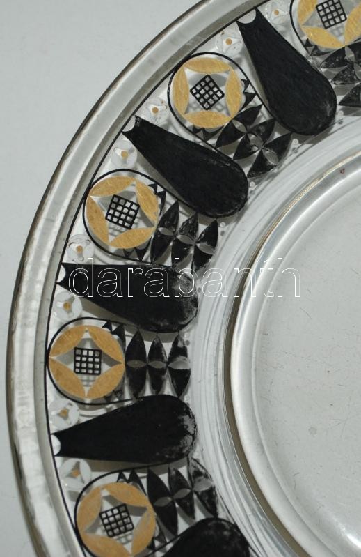 Leírás: Kézi festésű üvegtányér, üveg hibátlan, festés néhol kopottas d:31 cm