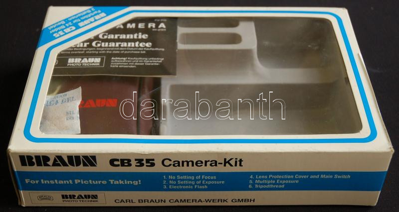 Analog ph... https://www.darabanth.com/hu/169-Gyorsarveres/169.0/Festmeny-mutargy-papirregiseg-egyeb/Fenykepezogepek-kamerak-kellekek~4000010/Braun-CB35-analog-fenykepezogep-eredeti-dobozaban-filmmel--3Cbr3EAnalog-photo-camera~II517491