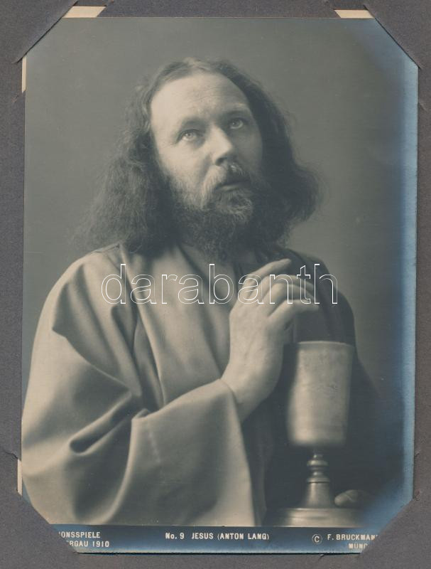 1910 Az oberammergaui passiójátékok Anton Lang szereplésével. 30 darab fotót tartalmazó mappa (egy fotón foltok) / Passion-act of Oberammergau, featuring Anton Lang. Booklet with 30 photos (stain on one photo) 23x18 cm