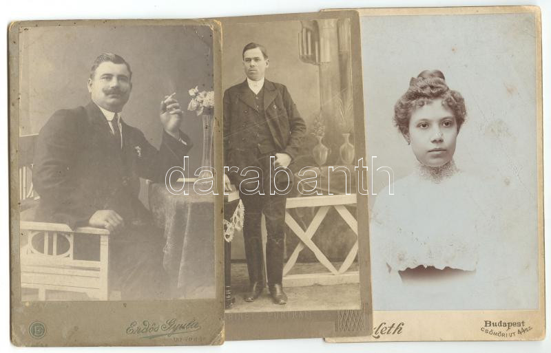 Leírás: cca 1890 3 db nagyobb méretű keményhátú fotó, többek között Goszleth 11x17 cm