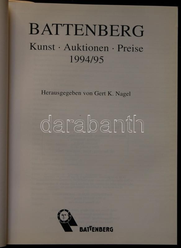 Battenberg: Kunst - Auktionen - Preise 1994-1995, 1995-1996. 2 kötet a... https://www.darabanth.com/hu/169-Gyorsarveres/169.0/Festmeny-mutargy-papirregiseg-egyeb/Konyvek-Epiteszet-muveszet~4000030/Battenberg-Kunst--Auktionen--Preise-1994-1995-1995-1996-2-kotet-aukcios-katalogus-fekete-feh~II549176