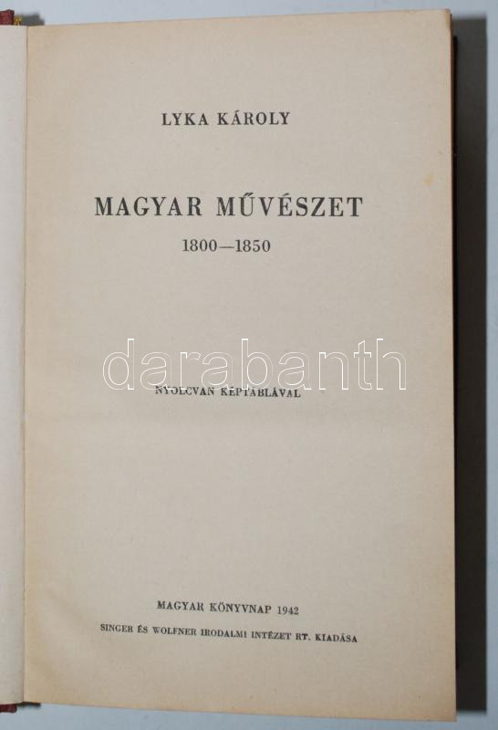 Lyka Károly: Magyar művészet 1800-1850. Bp., é.n., Singer és Wolfner. ... https://www.darabanth.com/hu/169-Gyorsarveres/169.0/Festmeny-mutargy-papirregiseg-egyeb/Konyvek-Epiteszet-muveszet~4000030/Lyka-Karoly-Magyar-muveszet-1800-1850-Bp-en-Singer-es-Wolfner-Kiadoi-egeszbor-kote~II569023