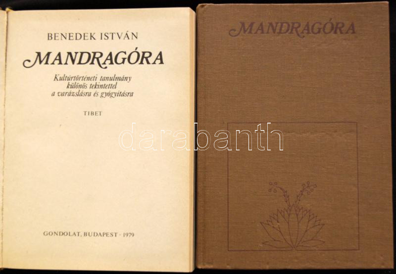 Leírás: Benedek István: Mandragóra - Kultúrtörténeti tanulmány különös tekintettel a varázslásra és gyógyításra I.-II. Bp., 1979 Gondolat.