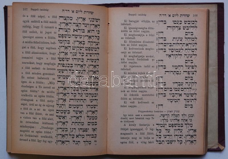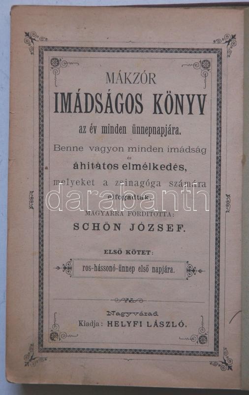 Mákzór Imádságos könyv az év minden ünnepnapjára. 1. kötet. Ros Hássáná ünnepre, Schlesinger József kiadása, Bp., fordította Schön József kiadói aranyozott egészvászon kötésben (kötéstábla elvált)