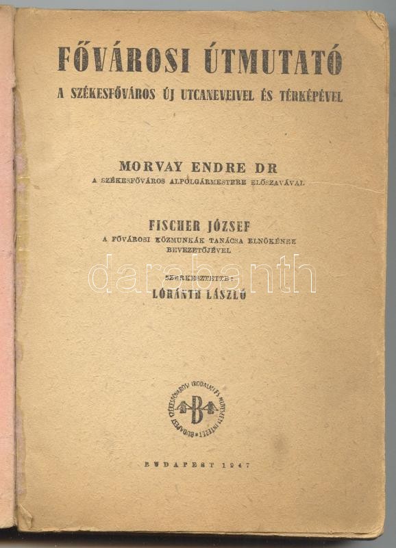 Leírás: 1947 Fővárosi útmutató. A székesfőváros új utcaneveivel 390p.