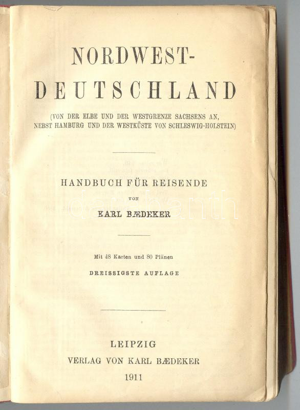 Karl Beadekker: Nordwest-Deutschland mit 48 Karten und 80 Plänen. Leip... https://www.darabanth.com/hu/169-Gyorsarveres/169.0/Festmeny-mutargy-papirregiseg-egyeb/Konyvek-Utazas-varosok~4000026/Karl-Beadekker-Nordwest-Deutschland-mit-48-Karten-und-80-Planen-Leipzig-1911-Baedekker-450p~II536022
