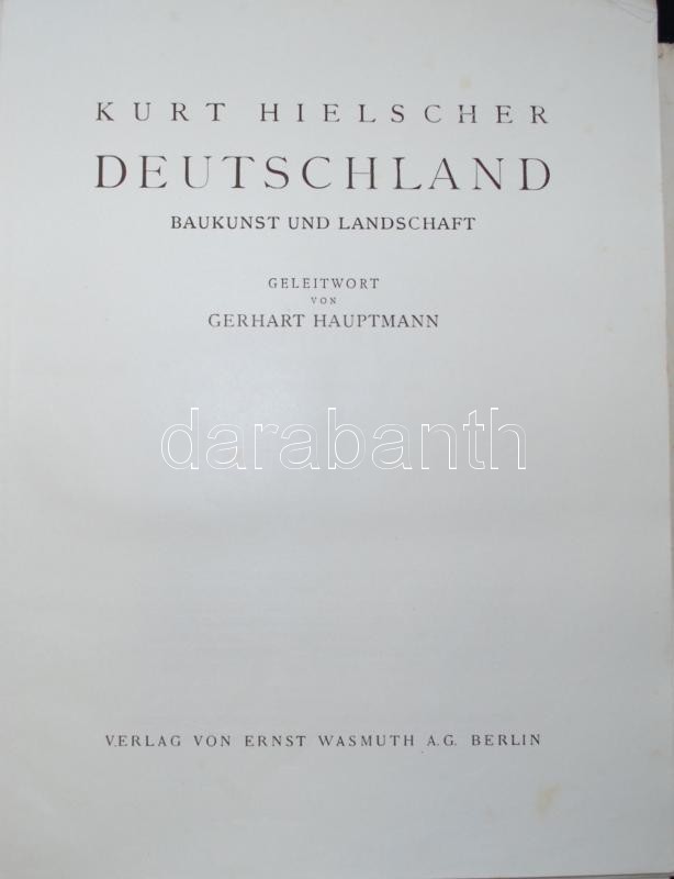 Kurt Hielscher: Deutschland. Landschaft und Baukunst. Geleitwort von Gerhart Hauptmann. (Orbis Terrarum) Berlin, 1927, Ernst Wasmuth A.G. Fotóalbum kiadói egészvászon kötésben, a kötésen foltok /