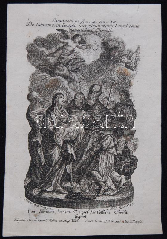 Antonio Balestra (1666-1740) - Joseph Friedrich Rein (1720-95): Simeon megáldja Krisztus szüleit, rézmetszet (könyvillusztráció) /