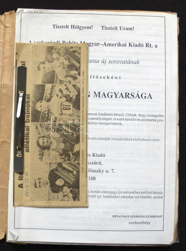 Leírás: Garay Sándor híres magyar atléta élete iratokban, képekben. Mappa olimpiai fotókkal, személyes okmányokkal, újságcikkekkel sok érdekességgel.