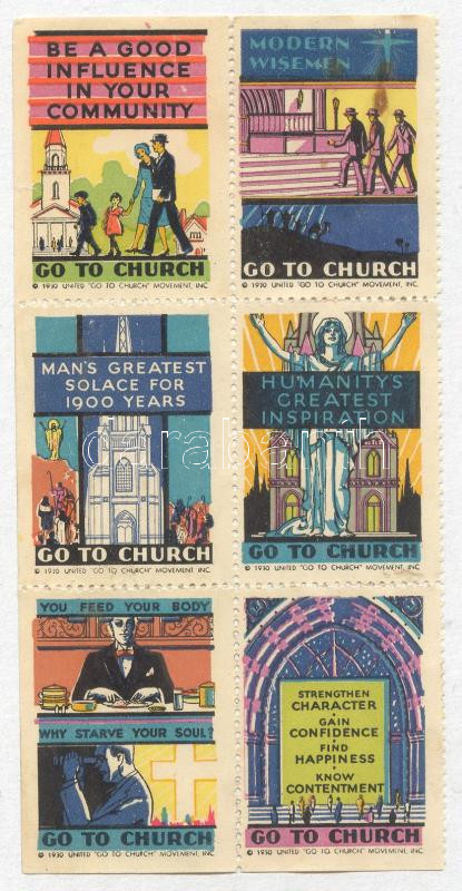 1930 Go to Church levélzáró bélyeg 6db-os ívdarab https://www.darabanth.com/hu/169-Gyorsarveres/169.0/Festmeny-mutargy-papirregiseg-egyeb/Parafilatelia~4000012/1930-Go-to-Church-levelzaro-belyeg-6db-os-ivdarab-3Cbr3E~II566229