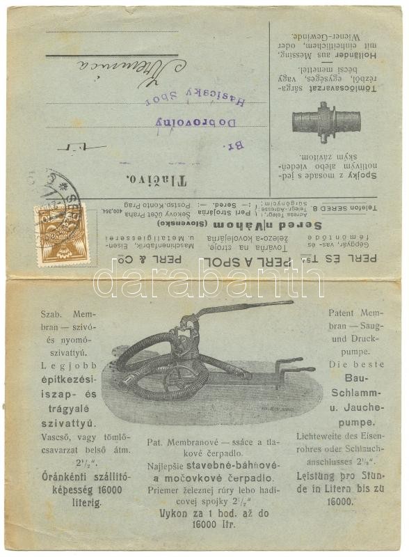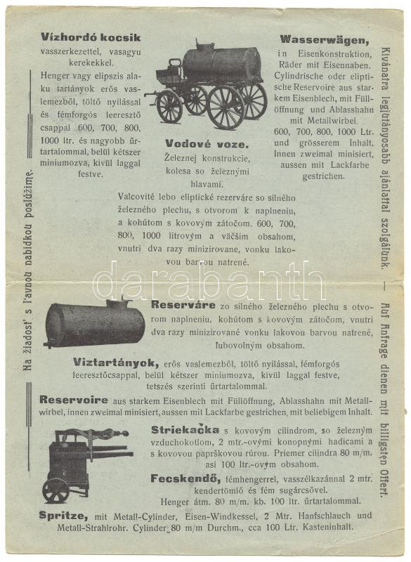 Leírás: 1926 Vízhordó kocsik reklám-levelezőlap 3 nyelvű/ Advertising 3 languages