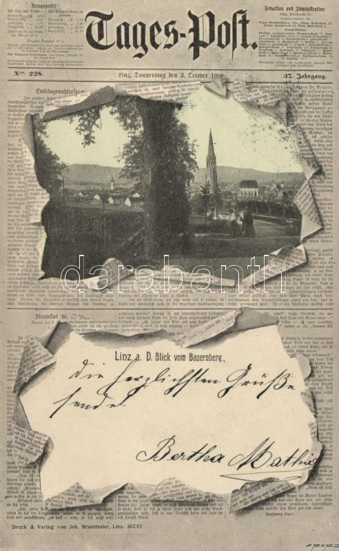 Linz an der Donau, newspaper https://www.darabanth.com/hu/169-Gyorsarveres/169.0/Kepeslapok/Ausztria~4000045/Linz-an-der-Donau-newspaper~II570256