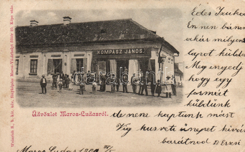 Marosludas the shop of János Kompász https://www.darabanth.com/hu/169-Gyorsarveres/169.0/Kepeslapok/Erdely~500006/Marosludas-the-shop-of-Janos-Kompasz~II569960