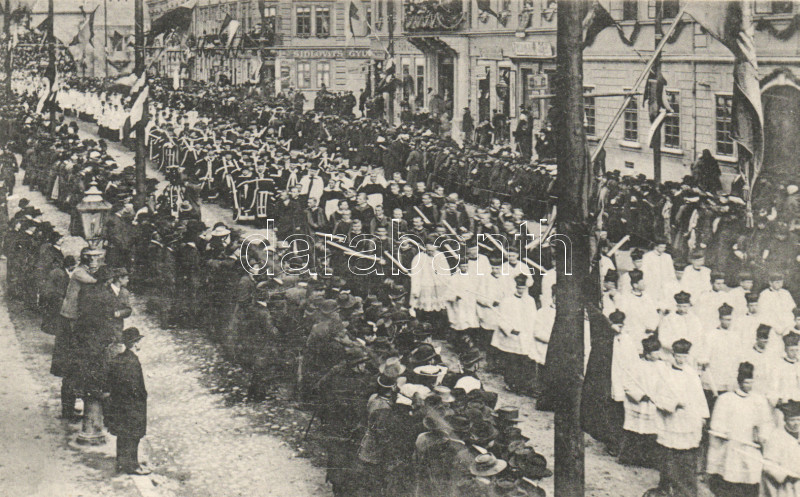 Leírás: 1906 Kassa Rákóczi hamvainak újratemetése, latin és görög szertartású papság / Rákóczi funeral march