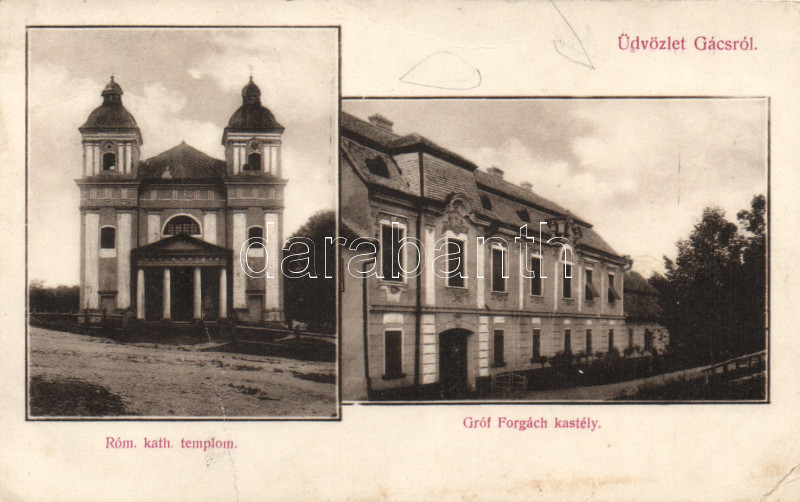 Gács Catholic church, Forgách castle (fa) https://www.darabanth.com/hu/169-Gyorsarveres/169.0/Kepeslapok/Felvidek~500007/Gacs-Catholic-church-Forgach-castle-fa~II569204
