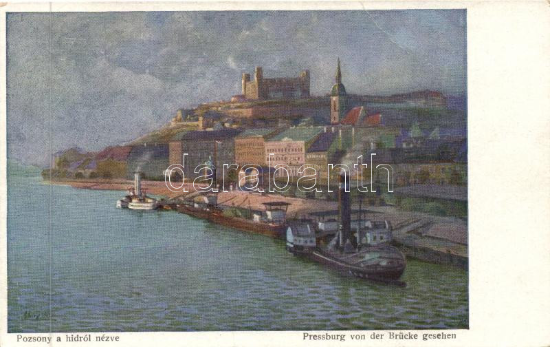 Leírás: Pozsony, castle, steamship s: Marx béla