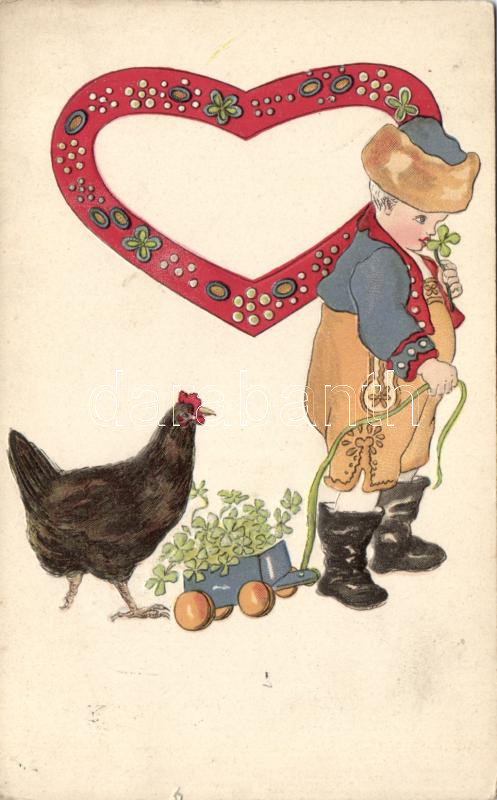 Hungarian folklore, child, cock, Emb. (small tear) https://www.darabanth.com/hu/169-Gyorsarveres/169.0/Kepeslapok/Folklor~4000089/Hungarian-folklore-child-cock-Emb-small-tear~II566335
