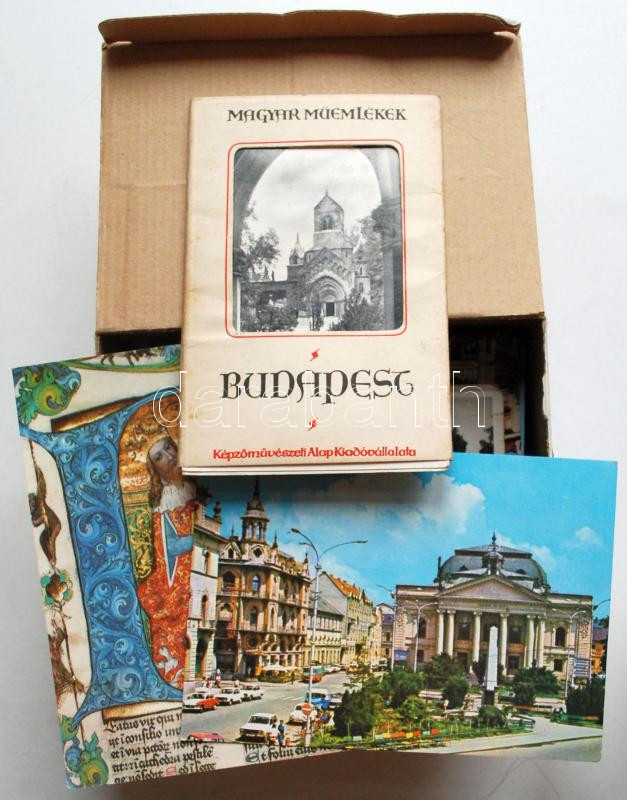 Leírás: Kb 110 db modern városképes lap, külföldi és magyar városokról, köztük egy képeslapos füzet a budapesti műemlékekről