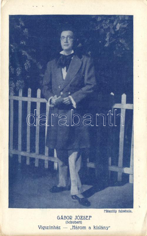 Gábor József, "Három a kislány" A Színházi élet melléklete (... https://www.darabanth.com/hu/169-Gyorsarveres/169.0/Kepeslapok/Szinesz~4000111/Gabor-Jozsef-Harom-a-kislany-A-Szinhazi-elet-melleklete-EK~II570853
