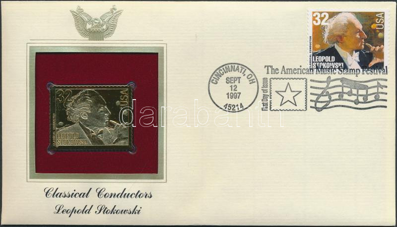 Amerikai Egyesült Államok 1997. "Klasszikus karmesterek/Leopold Stokowski 32c" aranyfóliás(22kt) bélyeg replika FDC borítékban, a megegyező bélyeggel,elsőnapi bélyegzővel és ismertetővel T:1