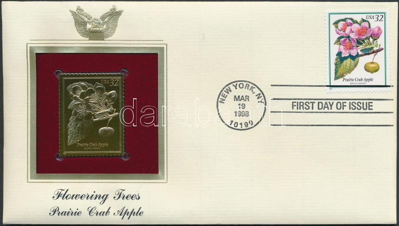 Amerikai Egyesült Államok 1998. "Virágzó fák/Malus Ioensis 32c" aranyfóliás(22kt) bélyeg replika FDC borítékban, a megegyező bélyeggel,elsőnapi bélyegzővel és ismertetővel T:1