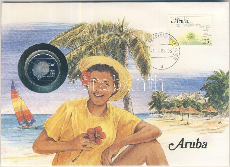 Ar... https://www.darabanth.com/hu/169-Gyorsarveres/169.0/Numizmatika/Ermes-es-bankjegyes-boritekok~4000124/Aruba-1988-1Fl-Beatrix-belyeges-ermes-boritekon-ismertetovel-TPP-3Cbr3EAruba-1988-1-Florin-~II534010