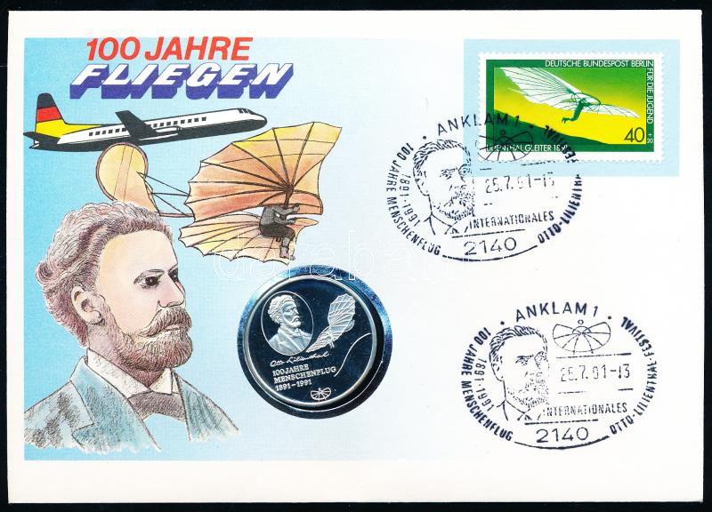 Németország 1991. "100 éves a repülés" ezüstözött emlékérem bélyeges borítékon, elsőnapi bélyegzéssel T:PP