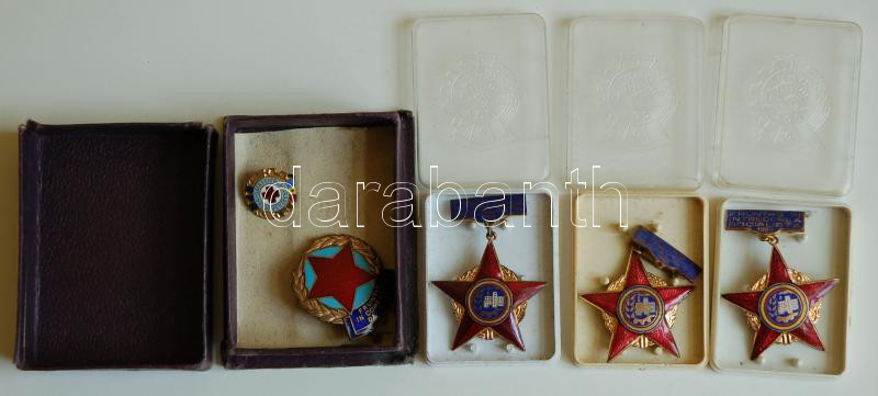 Románia 1963/65/69 zománcozott szocialista kitüntetés plasztiktokban (4db) T:2