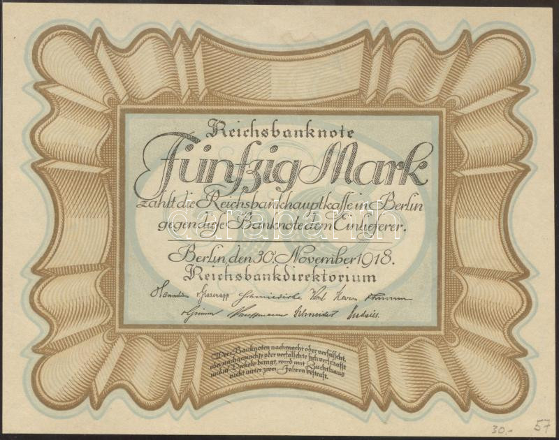 Germany... https://www.darabanth.com/hu/169-Gyorsarveres/169.0/Numizmatika/Kulfoldi-bankjegyek~4000132/Nemet-BirodalomWeimari-Koztarsasag-1918november-30-50M-TI--3Cbr3EGermany-Weimar-Republic-1918~II508577