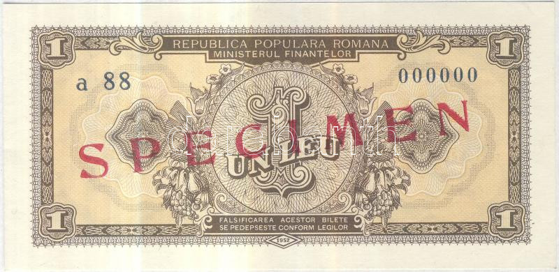 Romania 1952.... https://www.darabanth.com/hu/169-Gyorsarveres/169.0/Numizmatika/Kulfoldi-bankjegyek~4000132/Romania-1952-1L-SPECIMEN-felulnyomassal-TI-3Cbr3ERomania-1952-1-Leu-with-SPECIMEN-overprint~II569578