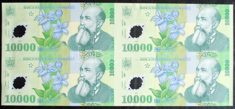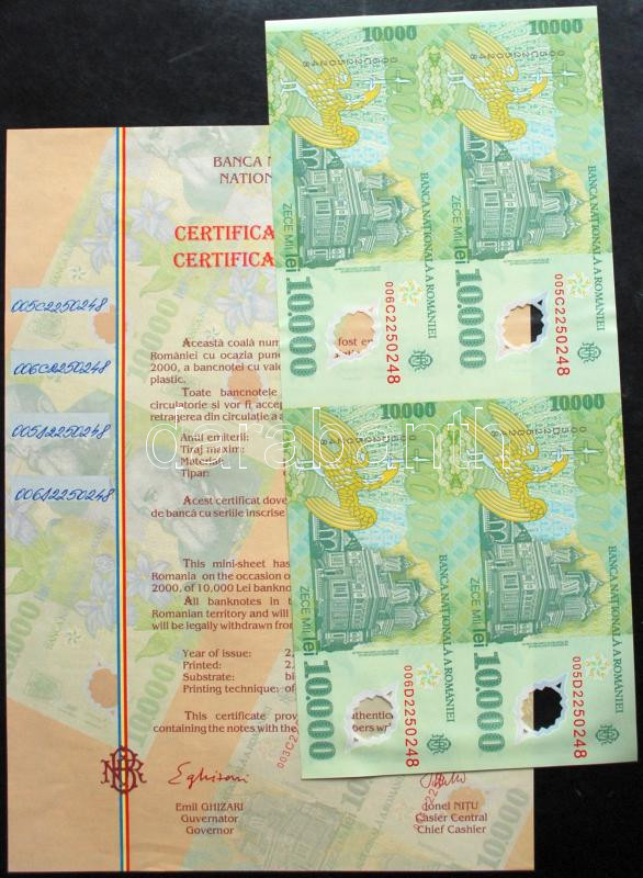 Románia 1999. 10.000L vágatlan négyes ívben T:I,I- Csak 2000db!! Tanúsítvánnyal!