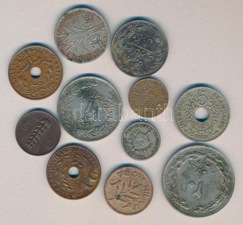 11 pcs of mixed metal coins with Ag from Cuba, Palestine Netherlands East Indies, France,etc. C:XF,VF