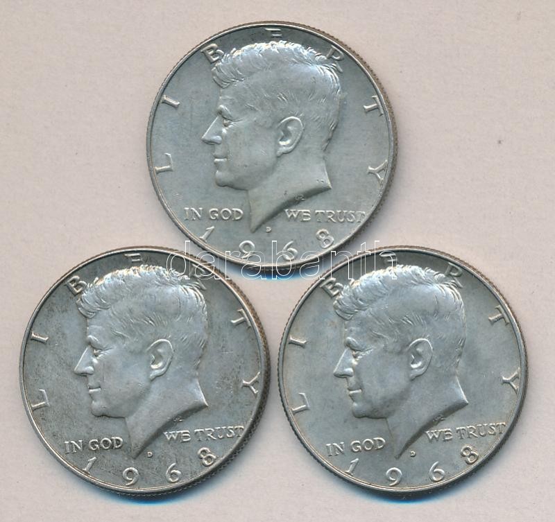 Leírás: Amerikai Egyesült Államok 1968. 1/2$ Ag "Kennedy" (3x) T:2