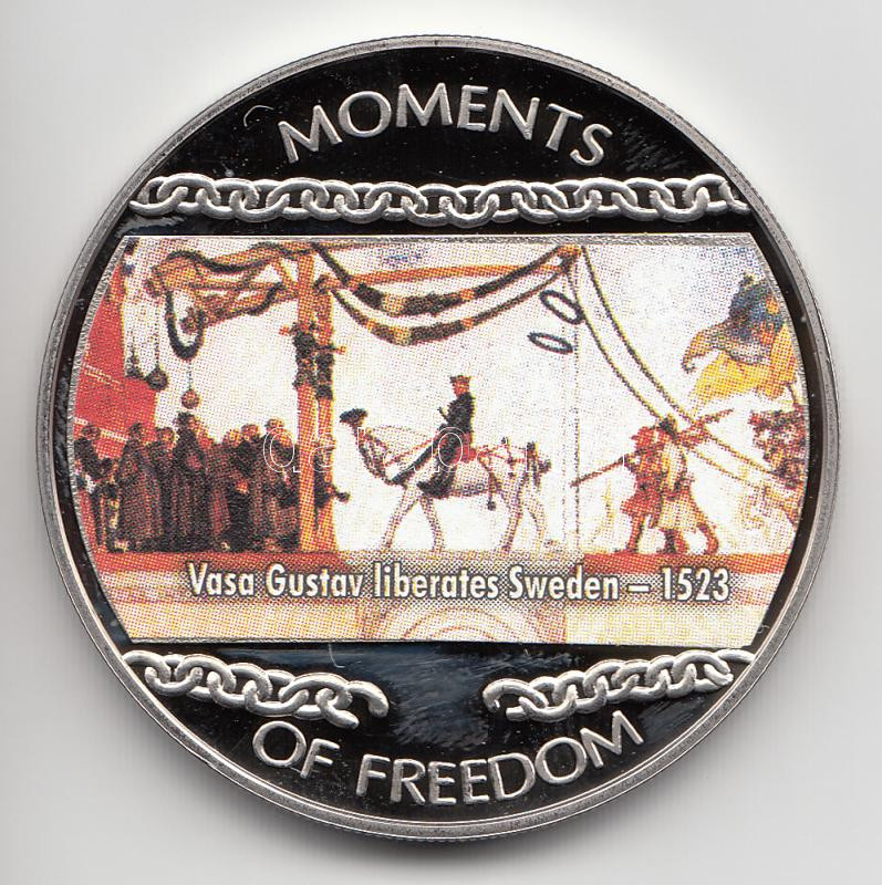 Liberia 2004. 10 Dollars "Moments of Freedom-Vasa Gustav I. liberates Sweden 1523." multicolor C:PP with certificate